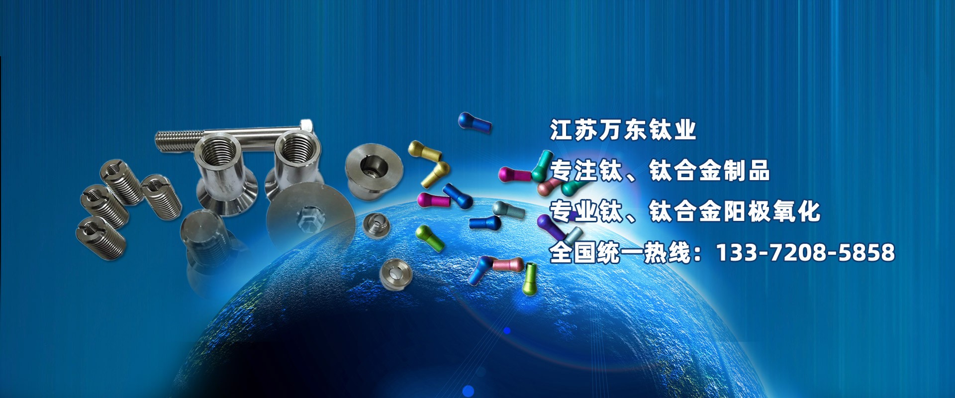 江蘇萬(wàn)東鈦業(yè)科技有限公司坐落于中國(guó)江蘇省南通市,擁有28年的鈦合金研發(fā)技術(shù),公司專(zhuān)業(yè)從事:鈦陽(yáng)極氧化、鈦合金陽(yáng)極氧化、脈沖氧化。鈦合金緊固件生產(chǎn):M0.6以上高品質(zhì):螺絲、螺母、螺柱、螺套、可根據(jù)用戶的特殊要求定制。